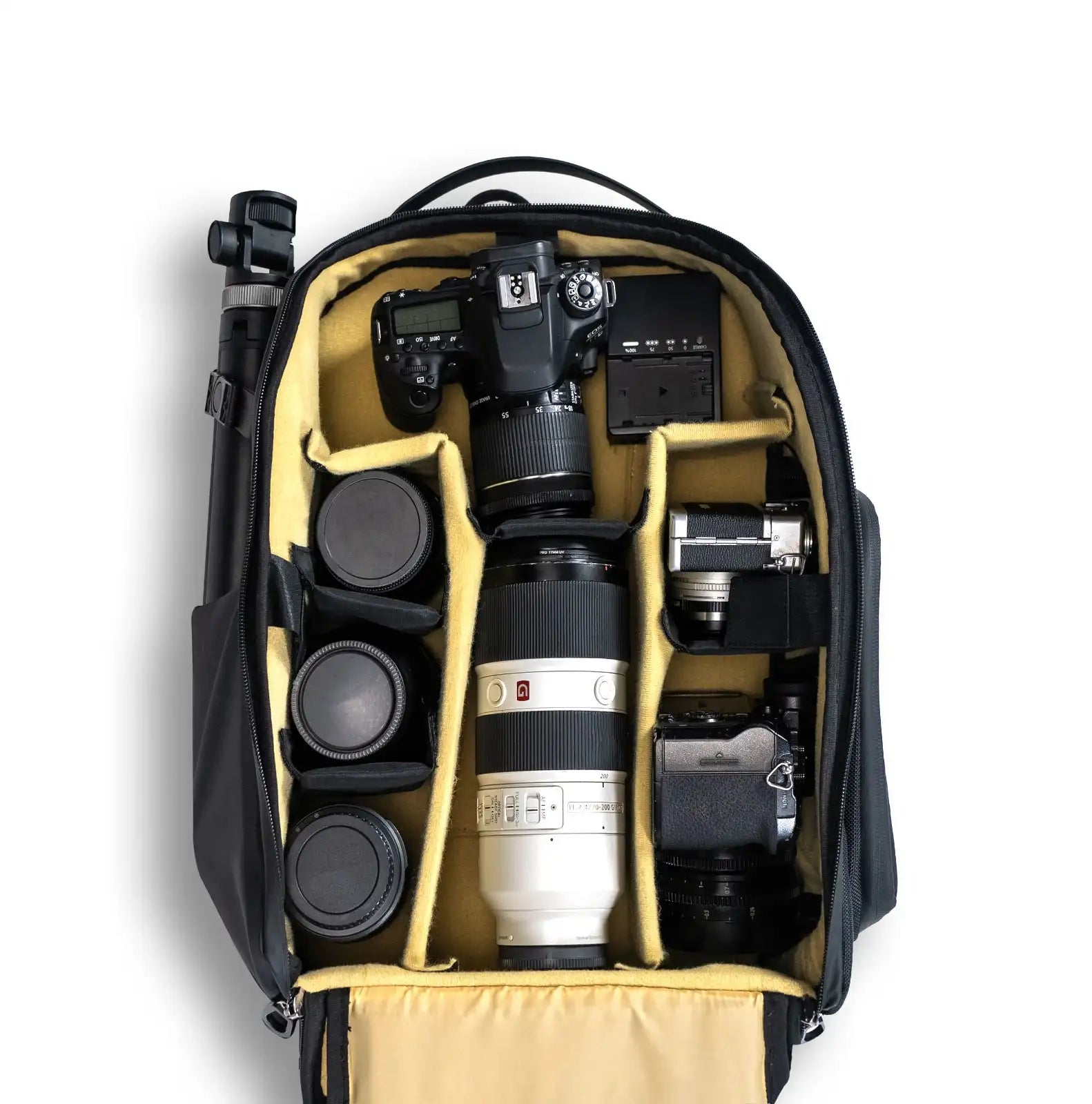 Organized Storage: Houses DSLR/mirrorless, 15.6” laptop, 10.9” iPad, chargers, SD/CF cards, filters & more