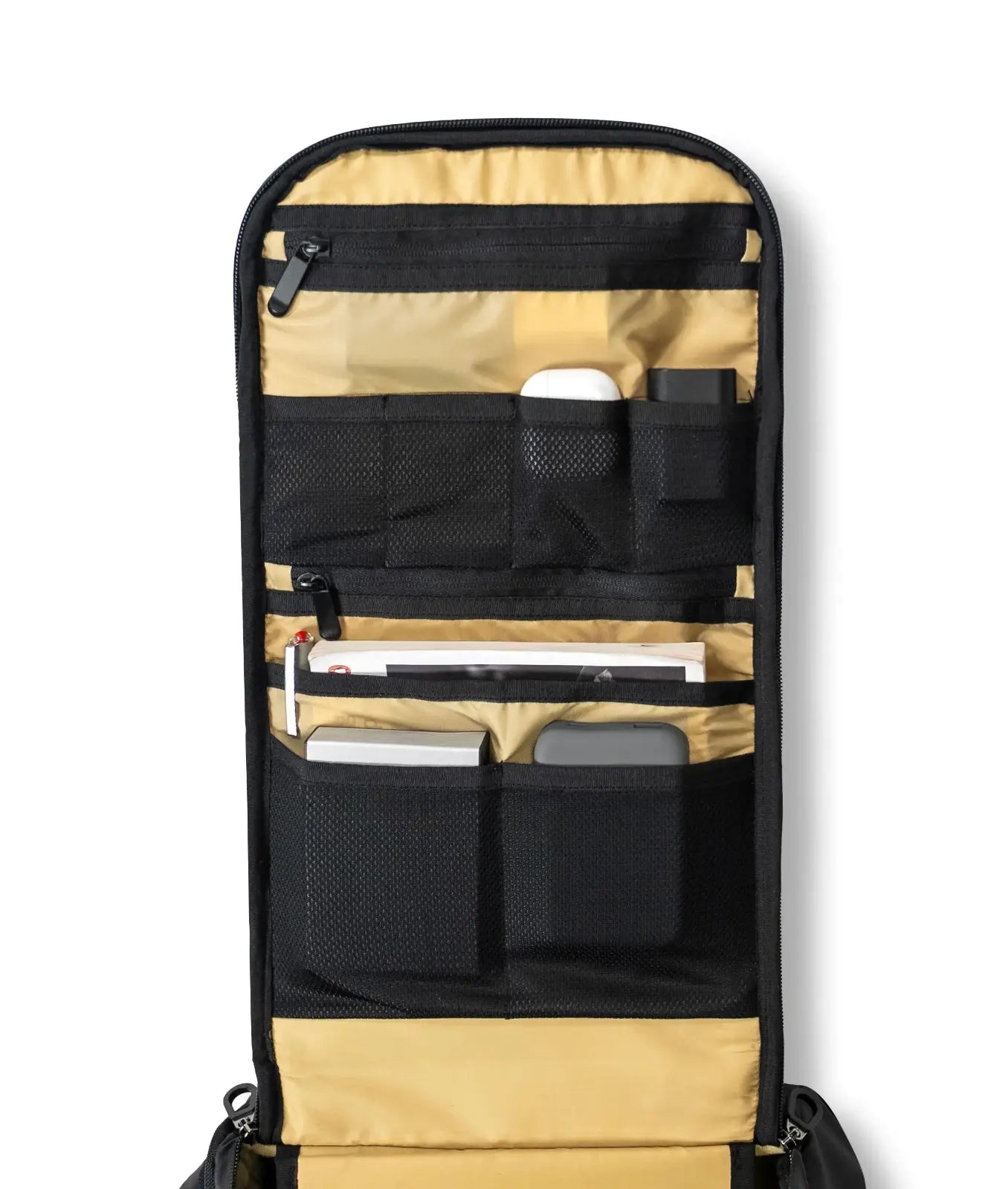 Inside, every detail is made for efficiency. A light-colored lining ensures nothing gets lost, while dedicated compartments secure your DSLR/mirrorless camera, 15.6” laptop, 10.9” iPad, and essentials like filters, chargers, lens hoods, and external flashes. The expandable pocket adds versatility, giving you extra room for a gimbal, layers, or additional gear on demanding shoots.